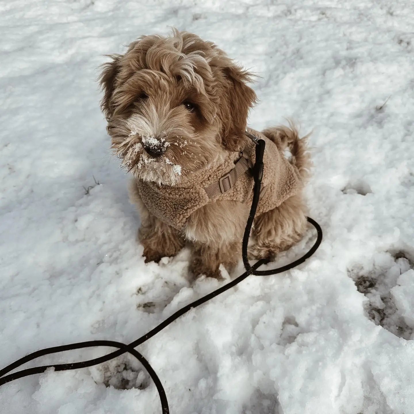 Abrigo y arnés latte