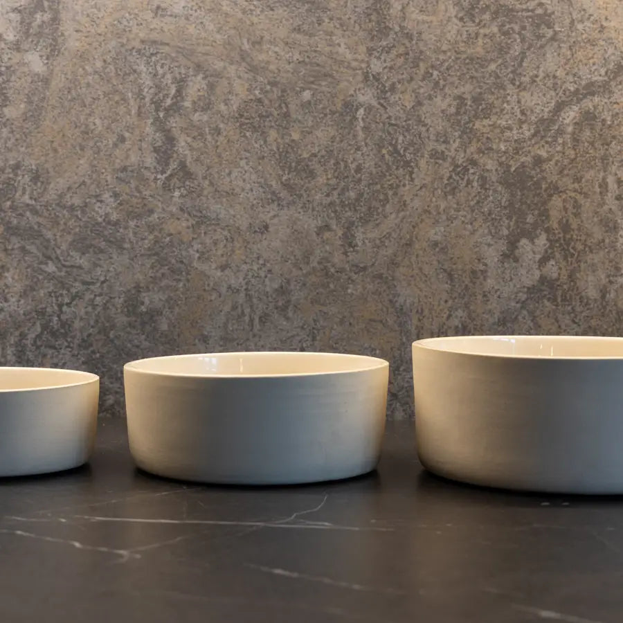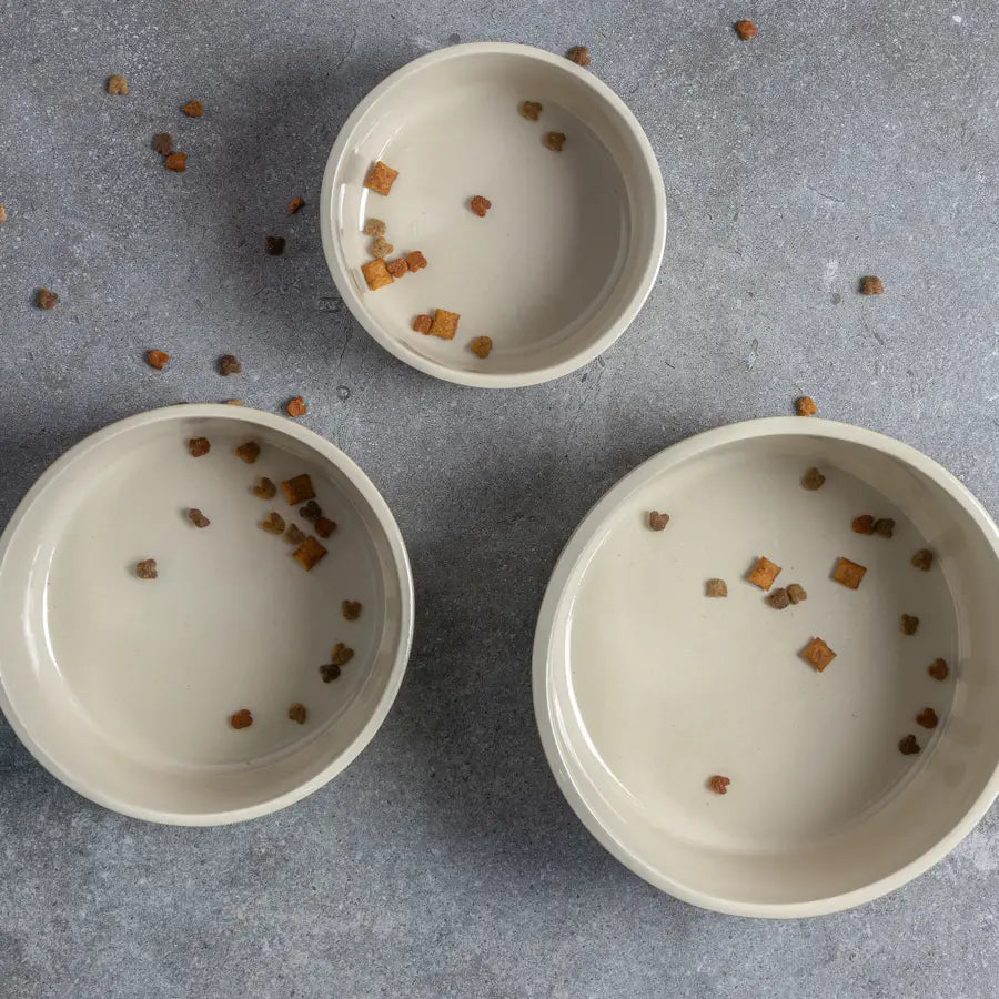 El bowl está hecho de cerámica con un exterior rugoso y mate y un interior esmaltado. Esto lo hace extra cómodo para que las mascotas coman y beban.