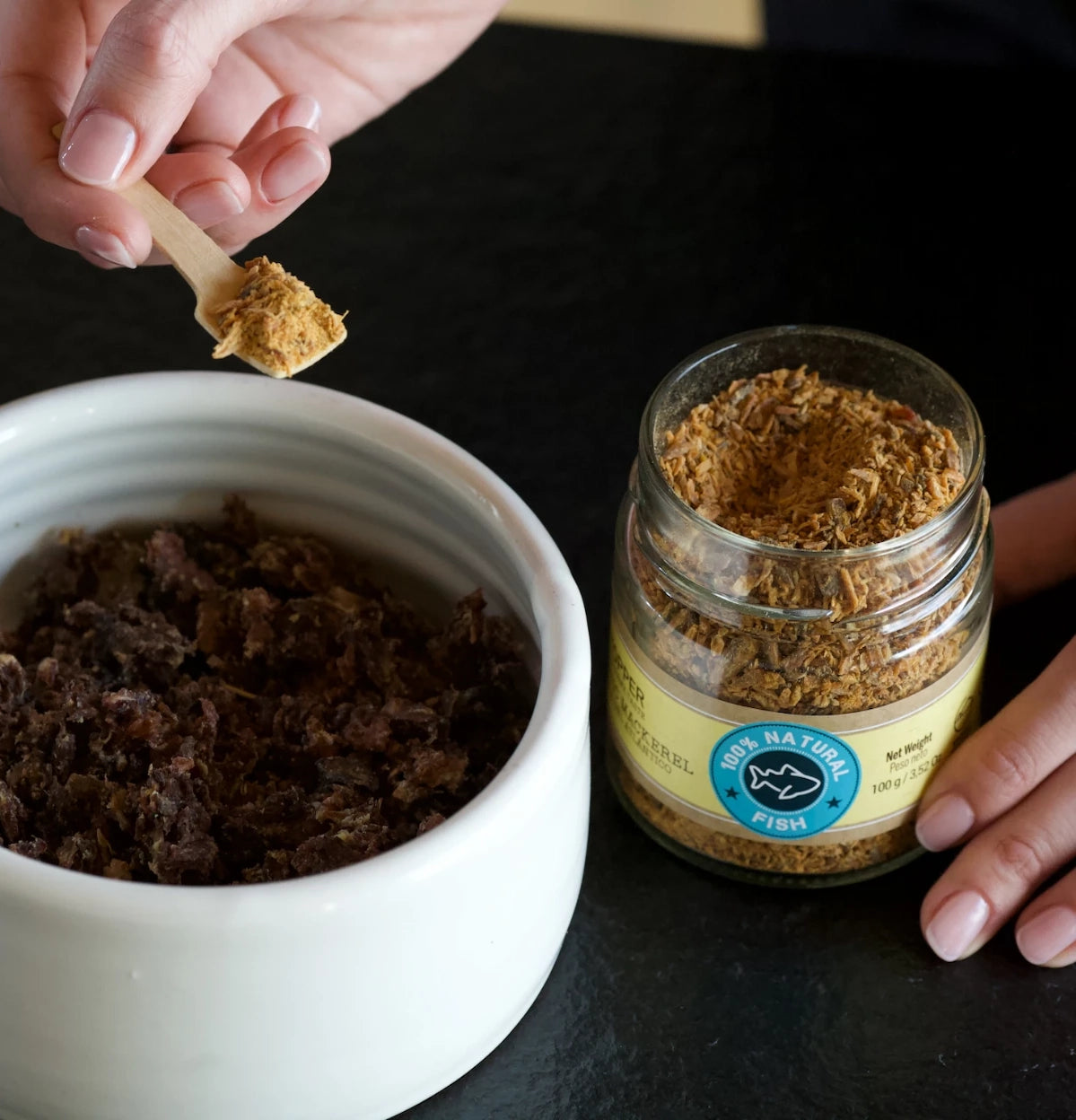 Nuestro Toppers de Caballa del Atlántico son un complemento 100% natural para perros, elaborados a partir de Caballa del Atlántico apta para consumo humano, secada al aire a baja temperatura para conservar todas sus propiedades y triturada hasta conseguir una textura granulada.