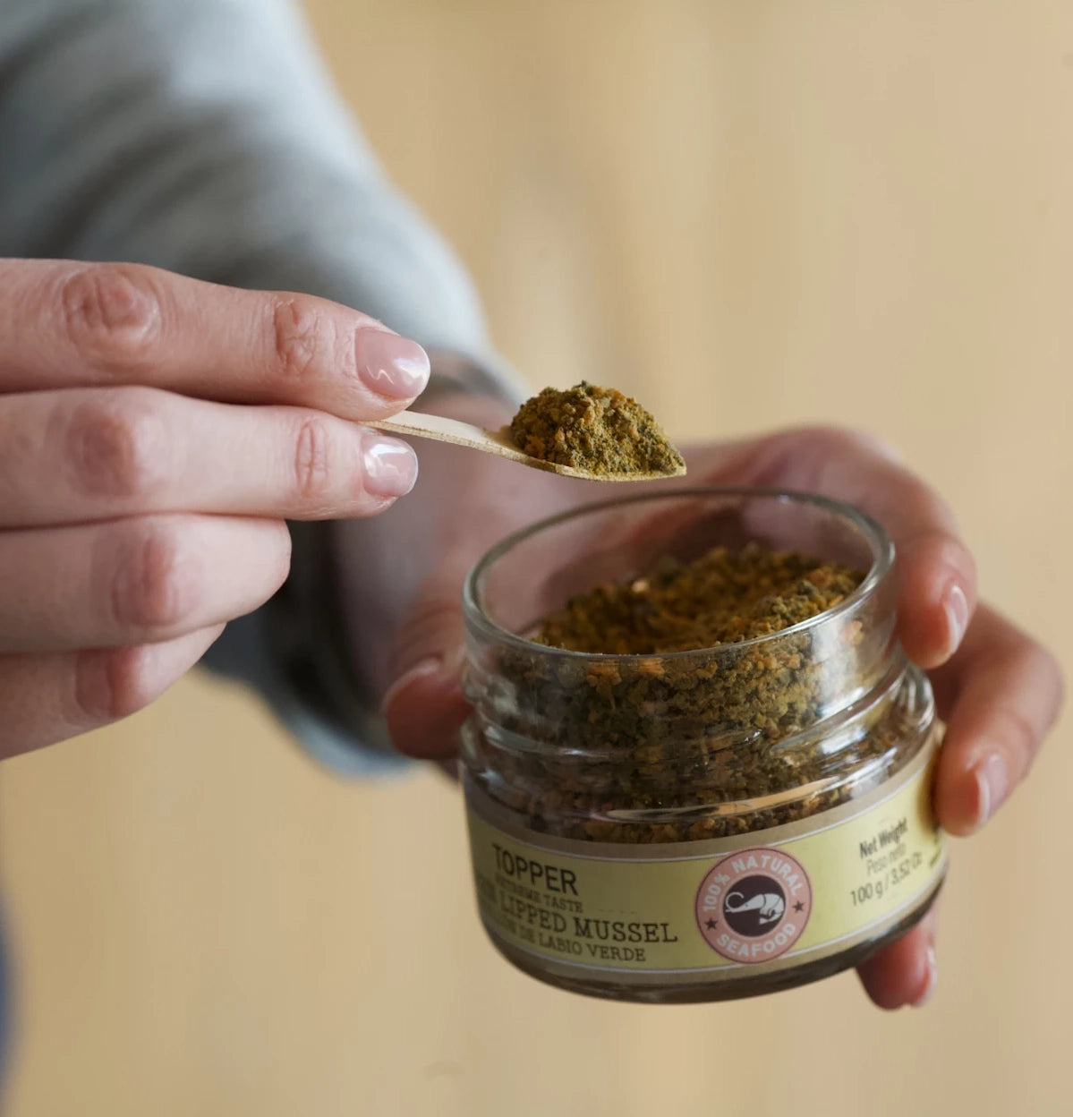Nuestros Toppers de Mejillón de labio verde son un complemento 100% natural para perros, elaborados a partir de mejillones de labio verde aptos para consumo humano, secados al aire a baja temperatura para conservar todas sus propiedades y triturados hasta conseguir una textura granulada.