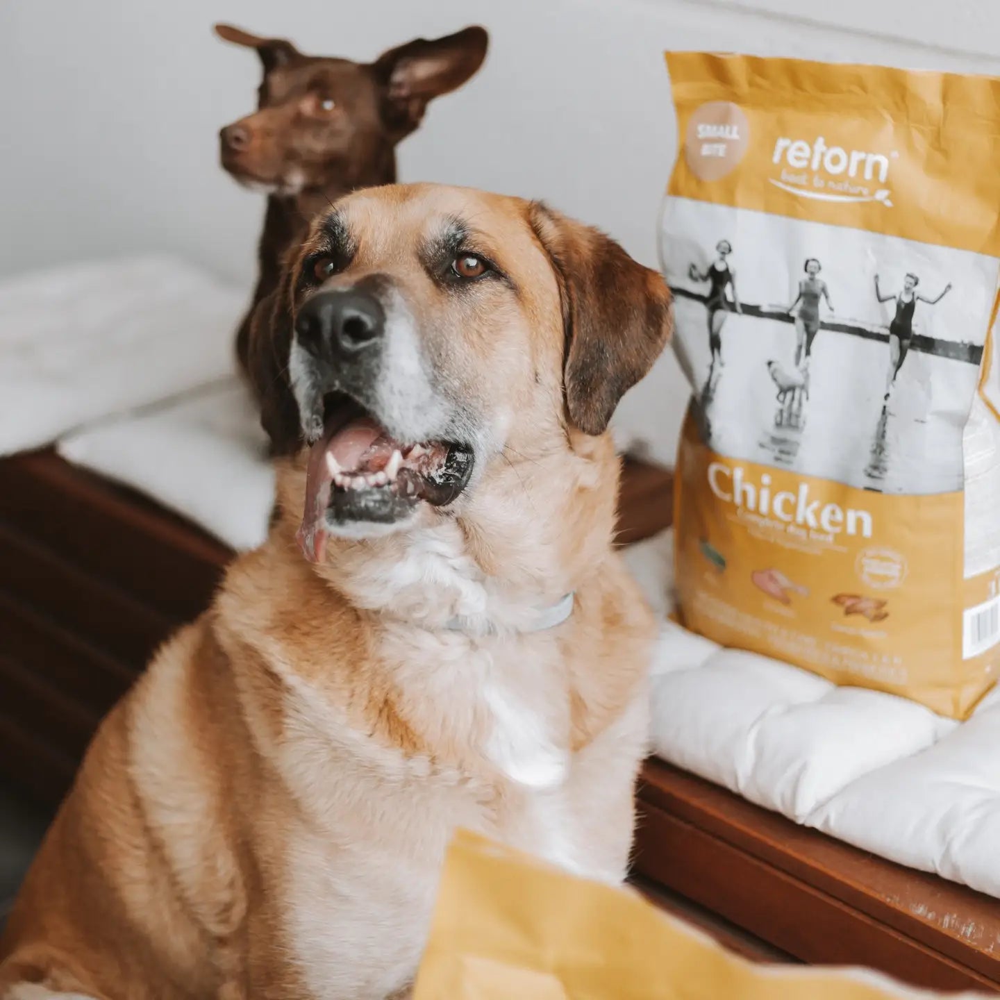 Alimento completo natural para perros con pollo, guisantes y boniato.