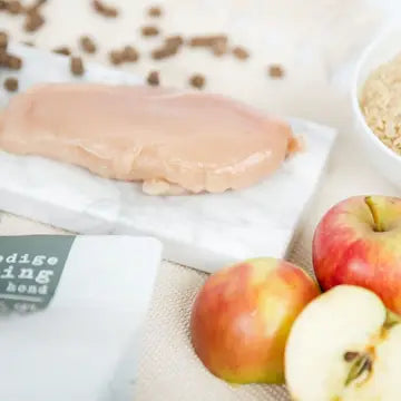 Cordero (24%; seco: 14% - fresco 10%), patata cocida al vapor (16%), fécula de guisante (15%), patata seca (11%), guisante al vapor (8%), gelatina hidrolizada, pulpa de remolacha, semillas de lino, levadura de cerveza, minerales, algarroba seca, aceite de salmón (0,8%), manzana seca (0,5%), inulina (fuente de FOS) (0,2%), huevo (0,1%), zanahoria seca (0,02%), ortiga (0,02%), equinácea (0,02%), tomate seco (0,02%), mango seco (0,02%), ciruela seca (0,02%), plátano seco (0,02%), albahaca (0,02%), espirulina (0,02%), arándano (0,02%), apio (0,02%), yuca (0,01%), glucosamina (100 mg/kg), condroitina (100 mg/kg) mg/kg).