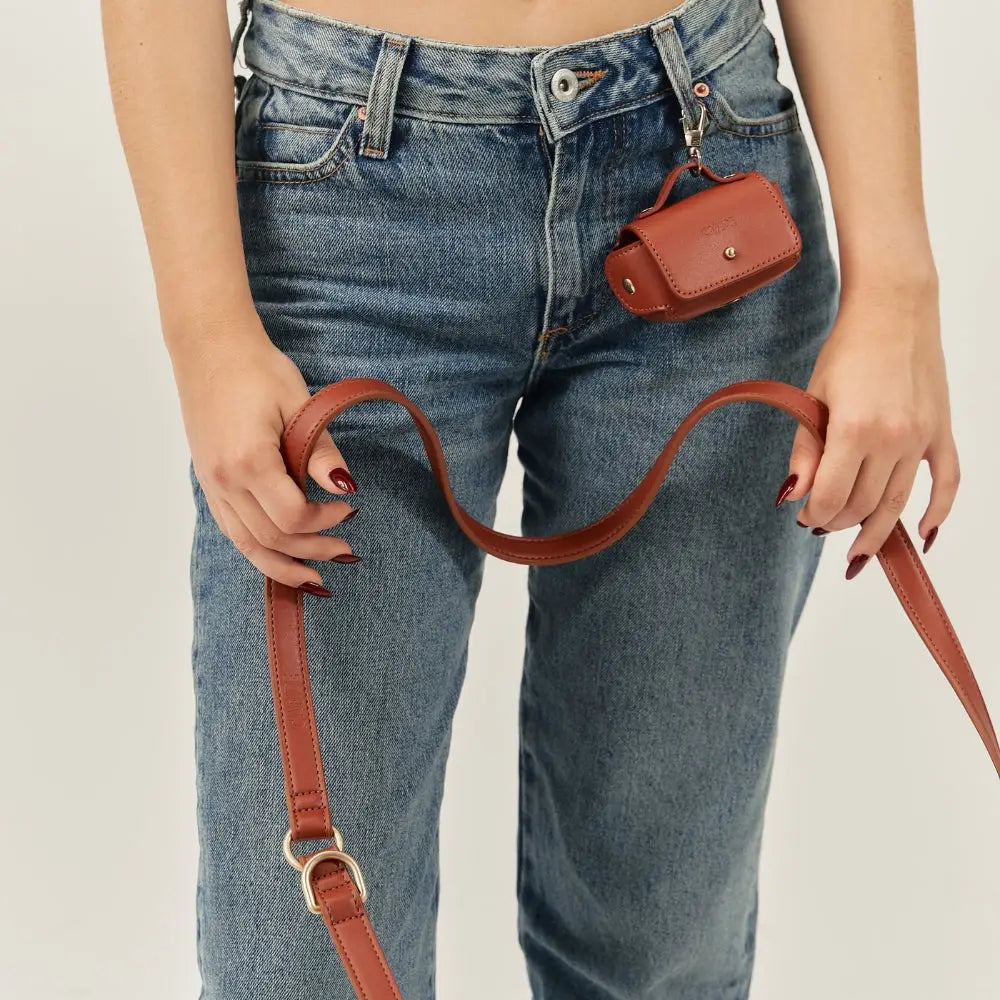 Portabolsas para perro hecho en cuero vegano Lignify® a mano en Europa con acochado interior.